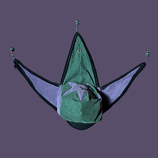Black corduroy jester coffin cap